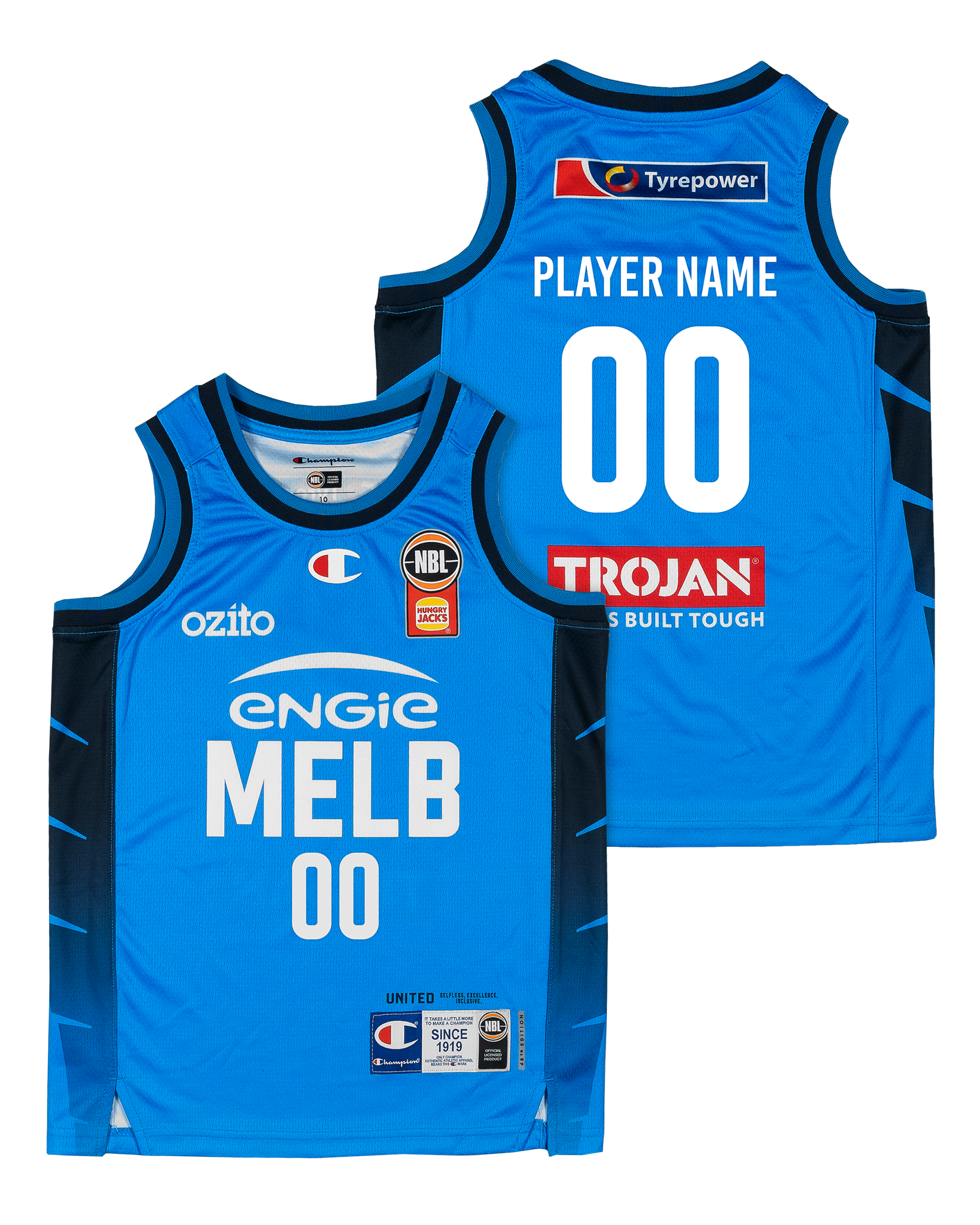 Champion brings its signature quality to the court with the Melbourne United 25/26 Youth Alternate Jersey - Other Players - Cobalt. Designed for performance and style, this jersey is crafted with premium fabrics for superior comfort and durability. Featuring detailed team wordmarks, player name, and number in high-quality fabric appliqués and silicone Champion C and NBL logos for an authentic and top quality finish.