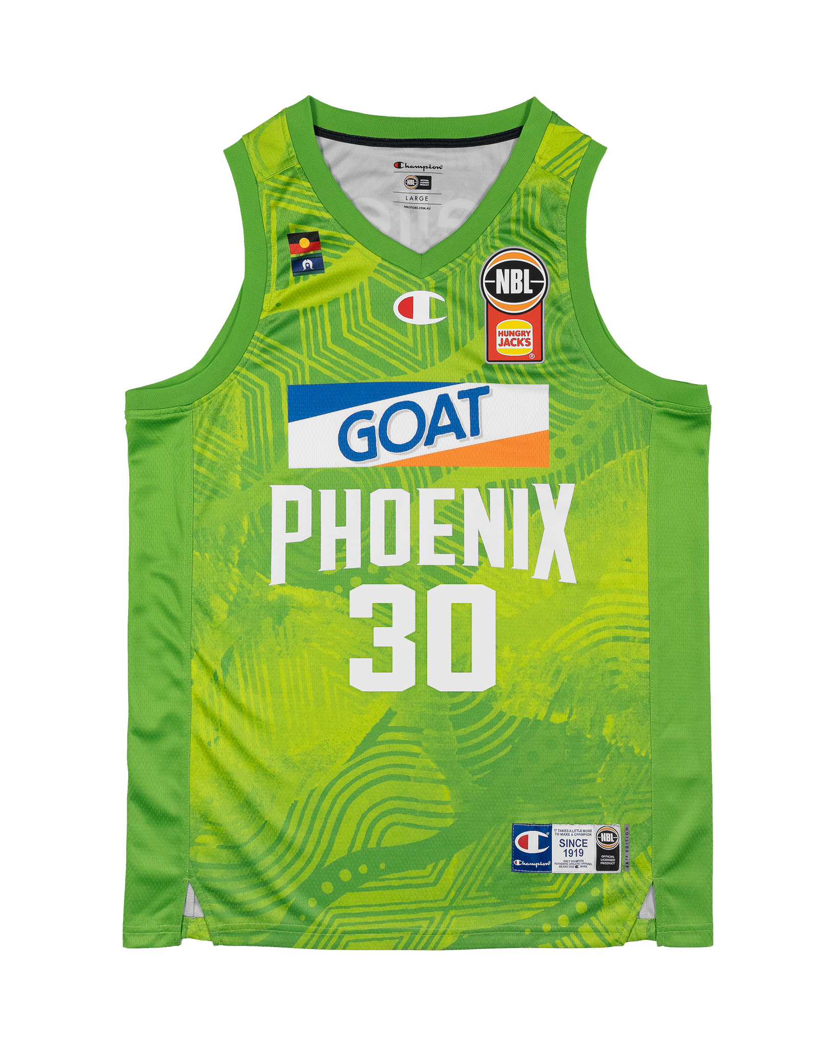 Champion brings its signature quality to the court with the S.E. Melbourne Phoenix 25/26 Indigenous Jersey - Owen Foxwell. Designed for performance and style, this jersey is crafted with premium fabrics for superior comfort and durability. Featuring detailed team wordmarks, player name, and number in high-quality fabric appliqués with Champion C and NBL logos made from silicon for an authentic and top quality finish.