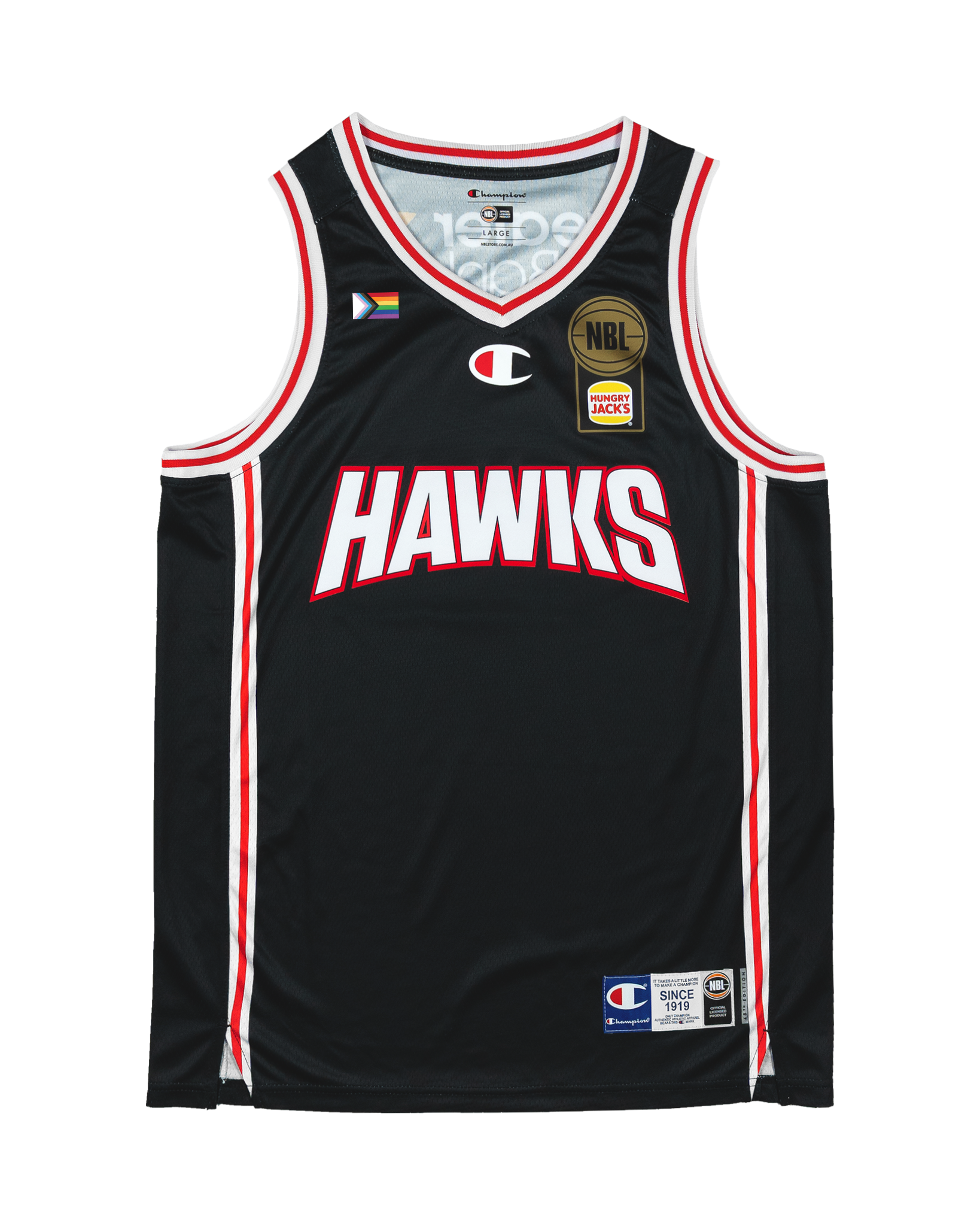 Celebrate Pride on and off the court with the Illawarra Hawks 25/26 Pride Round Jersey. In partnership with Champion, the Hungry Jack’s NBL continues to champion inclusivity and diversity within the LGBTQ+ community. This jersey embodies the belief that sport is for everyone—welcoming fans and athletes alike, no matter who they are. Wear it proudly to show your support for equality, representation, and the power of basketball to bring communities together.