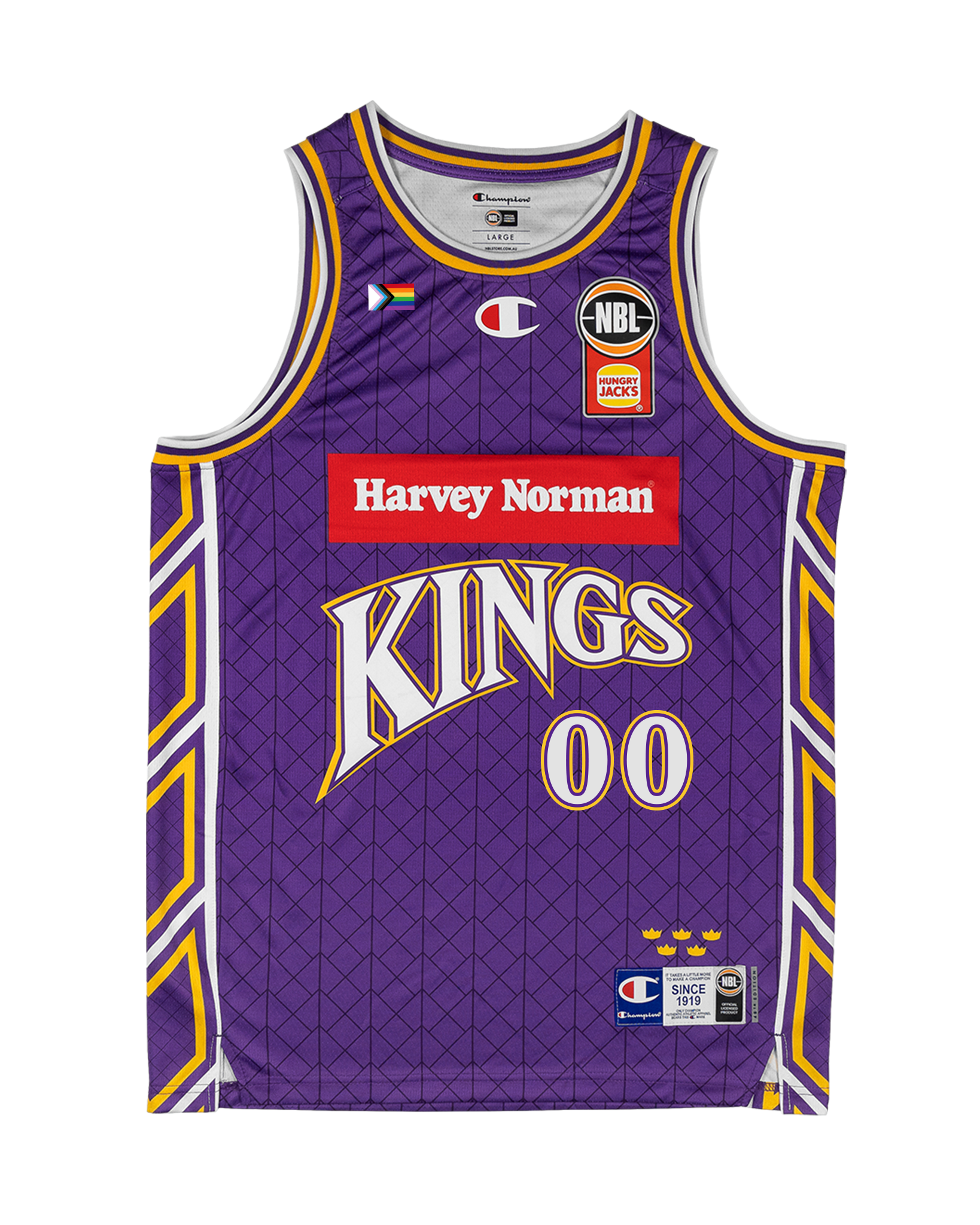 Celebrate Pride on and off the court with the Sydney Kings 25/26 Pride Round Jersey - Personalised. In partnership with Champion, the Hungry Jack’s NBL continues to champion inclusivity and diversity within the LGBTQ+ community. This jersey embodies the belief that sport is for everyone—welcoming fans and athletes alike, no matter who they are. Wear it proudly to show your support for equality, representation, and the power of basketball to bring communities together.